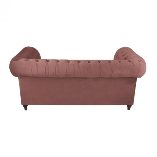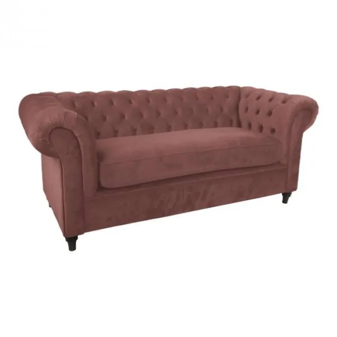 De 2 zitsbank Giethoorn is een klassieke bank. Deze bank is gedecoreerd met diepliggende knopen in de rug en armleuning. De Giethoorn is voorzien van één los zitkussen. Het zitcomfort van deze bank is stevig. Uitgevoerd in de stof Kronos fluweel roze.