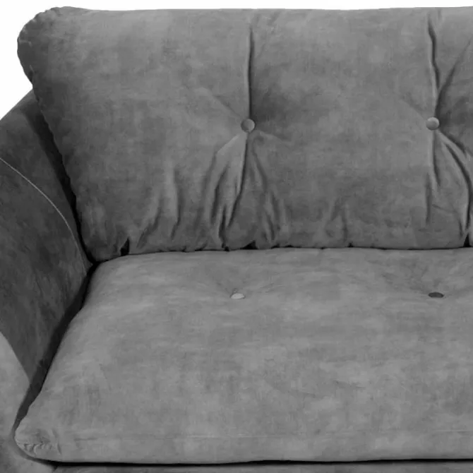 Deze mooie 3 zitsbank (228 cm) met decoratieve knopen in de zitting en rugkussens is uitgevoerd in de stof velours Adore grijs. Door de velours stof krijgt de loungebank een zeer opvallende en rijke uitstraling. Daardoor is deze bank uitermate geschikt voor ieder interieur Deze bank heeft een zachte maar toch stevig zitcomfort. De Kuddar heeft 2 losse rugkussen en 2 losse zitkussens voorzien van een rits en heeft 2 sledepoten. Doordat deze bank dunne, maar zeer stevige sledepoten heeft, zorgt de bank ervoor dat je woonkamer ruimtelijk oogt. De bank is dus ook perfect in een kleinere ruimte.