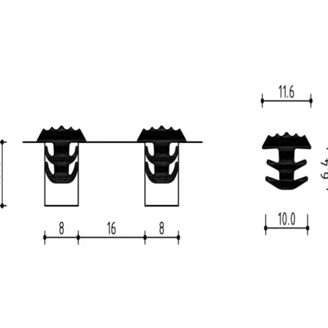 Rubberen antislipstrip tbv Stepwood treden (met sleuf). Kleur zwart RAL9004.