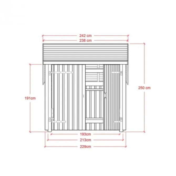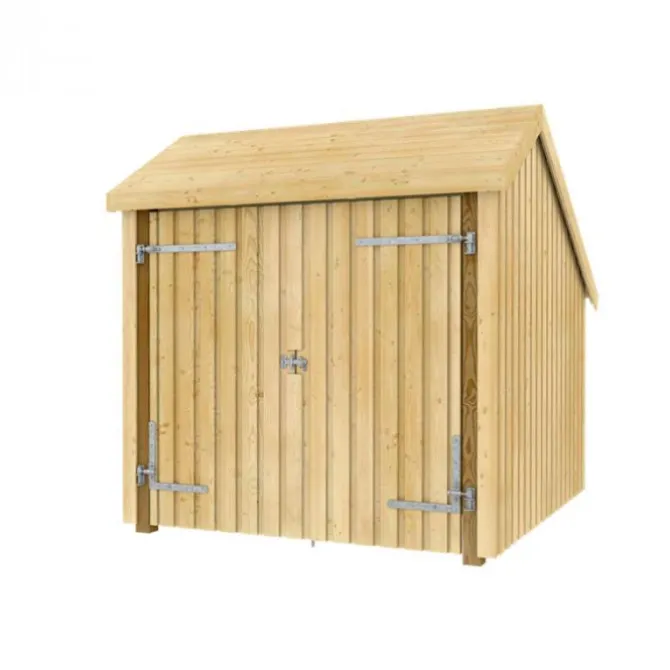 Deze berging is gemaakt van onbehandeld Scandinavisch sparrenhout (vuren). Doordat de onderdelen onbehandeld zijn kan je alles naar eigen wens verven of beitsen. De vloeroppervlakte is 4,6 m2, maar je hebt een buitenoppervlak van 6,5 m2 nodig.