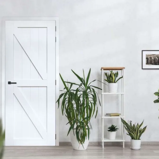 De binnendeur wordt voorbehandeld met een hoogwaardige polyurethaan witte voorlak (RAL9010 – zuiverwit). Schuur de deur licht op voordat je de binnendeur aflakt.