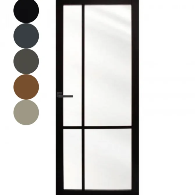 De Austria Asti binnendeur uit de serie Nero Legno is een industriële houten binnendeur met een uitstraling van een luxe stalen deur. Dit komt door de extra slanke stijlen. Deze zwarte binnendeur is gemaakt van hout met HDF toplaag.