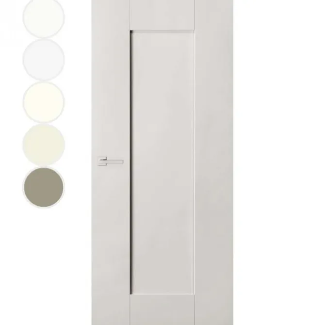 De binnendeur wordt voorbehandeld met een hoogwaardige polyurethaan witte voorlak (RAL9010 – zuiverwit). Schuur de deur licht op voordat je de binnendeur aflakt.