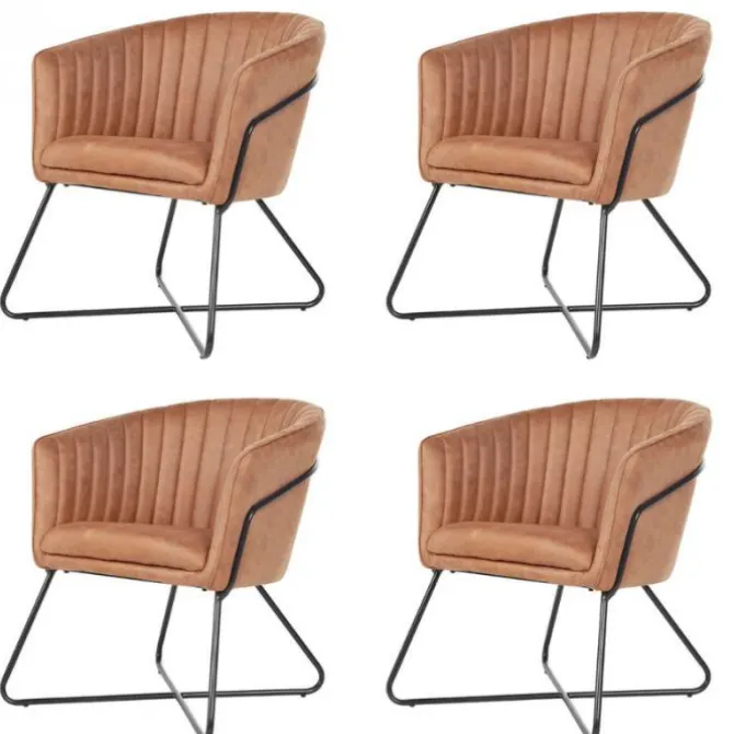 De luxe eetkamerstoel Nova is nu verkrijgbaar in een set van 4 stuks! De eetkamerstoel is een heerlijke kuipstoel bekleedt met de hoogwaardige lederlook stof Soft. De stoel is uitgevoerd met prachtige decoratieve stiknaden en wordt geleverd met zwarte metalen poten. Deze stoel heeft een uitstekend comfort.