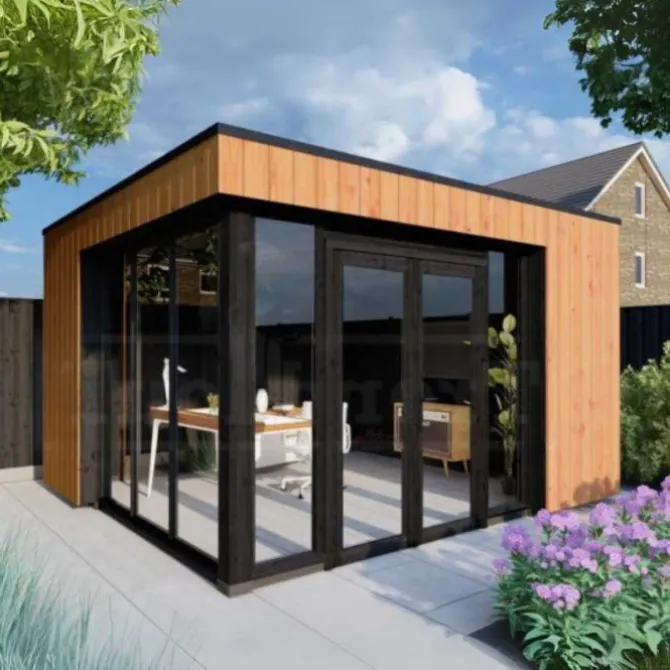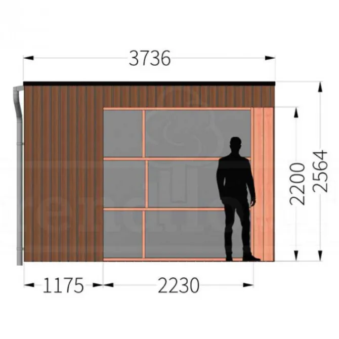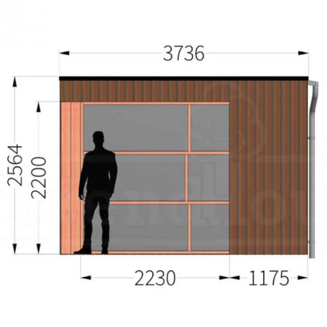 Trendhout buitenverblijf Capri. Dit is het basis model van 4 meter diep en beschikbaar in diverse breedte maten. Wil je dit buitenverblijf helemaal naar eigen wens samen stellen klik dan op de knop hierboven en ontwerp je buitenverblijf in de 3D configurator.