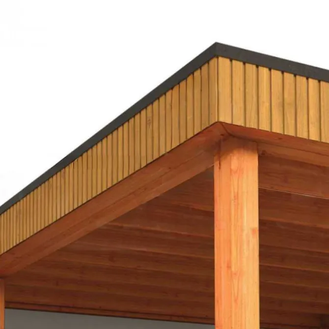 Trendhout buitenverblijf Capri. Dit is het basis model van 4,5 meter diep en beschikbaar in diverse breedte maten. Wil je dit buitenverblijf helemaal naar eigen wens samen stellen klik dan op de knop hierboven en ontwerp je buitenverblijf in de 3D configurator.