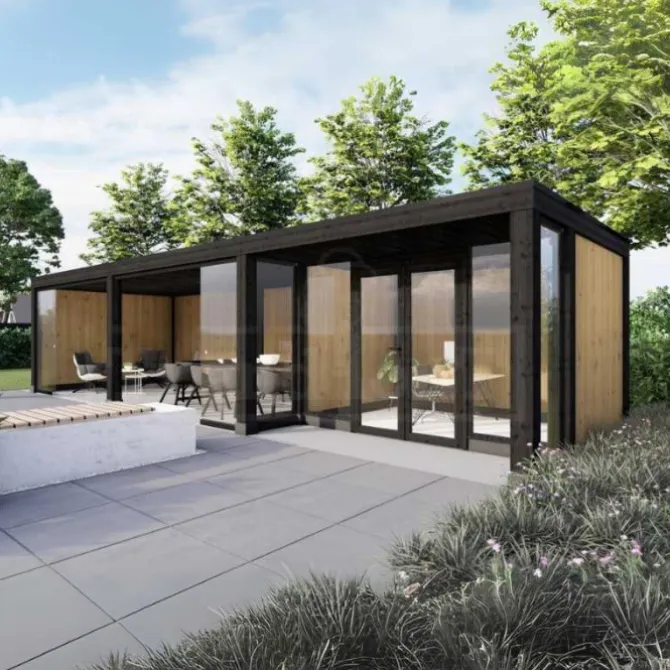 Trendhout buitenverblijf Palermo XXL. Dit is het basis model van 4 meter diep en beschikbaar in diverse breedte maten. Wil je dit buitenverblijf helemaal naar eigen wens samen stellen klik dan op de knop hierboven en ontwerp je buitenverblijf in de 3D configurator.