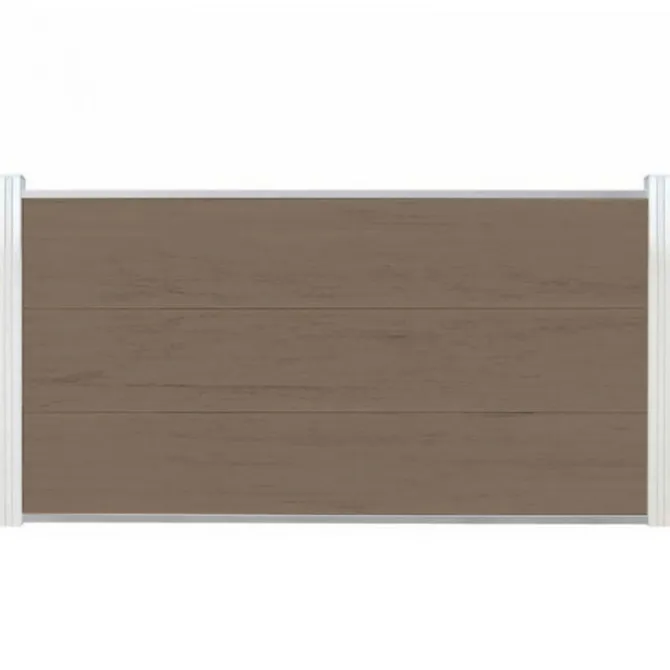 Schutting composiet co-extrusie Como vergrijsd bruin met blank aluminium kader (180 x 90 cm). Deze schutting wordt geleverd als een zelfbouw pakket waarmee je zelf een unieke schutting kunt maken.