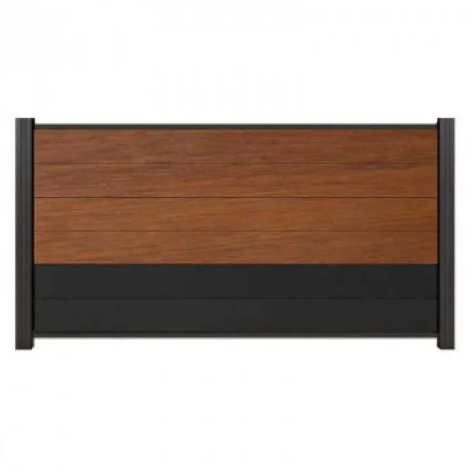 Bamboe en aluminium antraciet met antraciet aluminium accessoires. De schuttingdelen schuif je van bovenaf tussen de C-Wood Modular / Mix & Match palen. De volgorde van de verschillende planken kan je zelf bepalen. Je begint onder en eindigt bovenop.