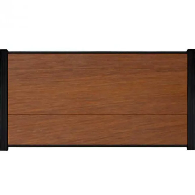 Schutting composiet Design bruin met blank aluminium frame (180 x 180 cm)
