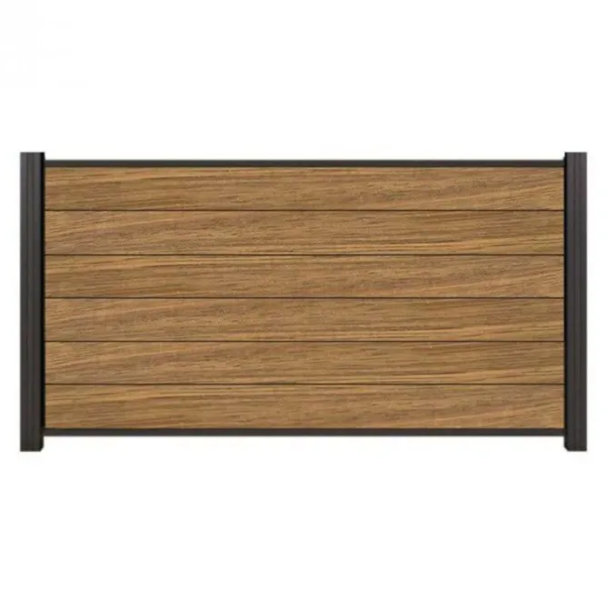 Schutting composiet Design donkerbruin met blank aluminium frame (180 x 180 cm)