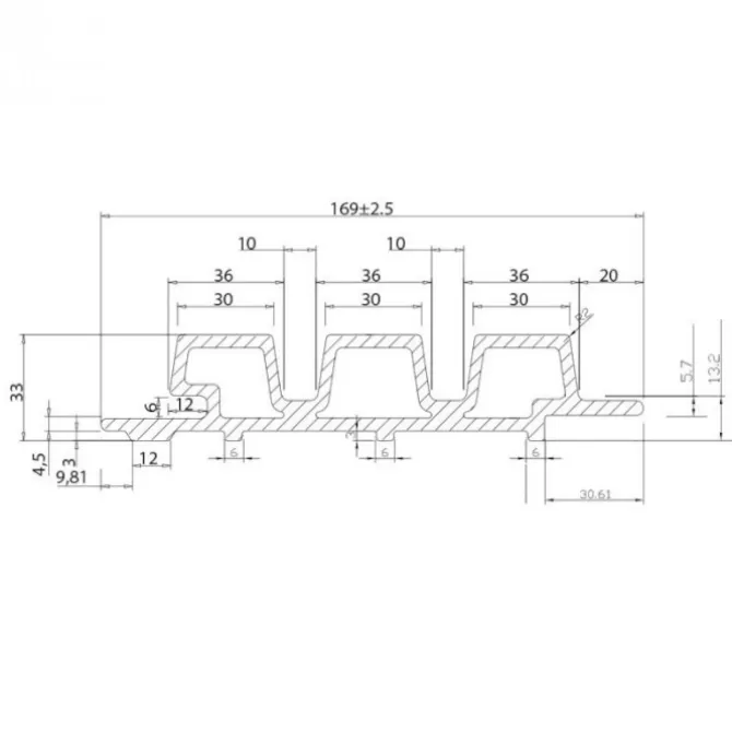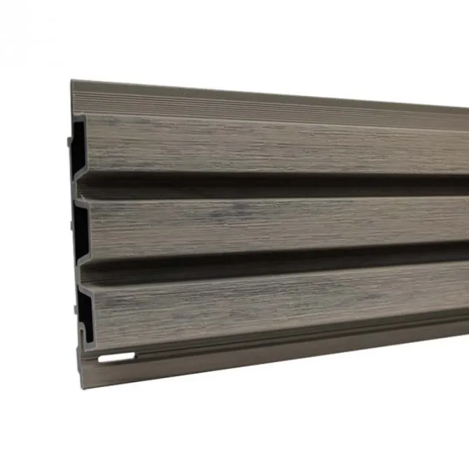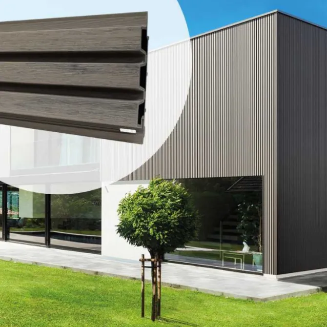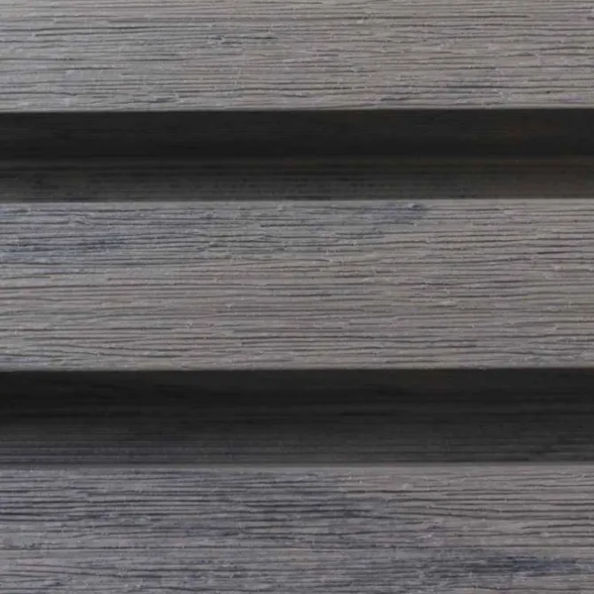 De plank heeft een natuurlijke houtuitstraling door de kleur en nagebootste houtstructuur. Het trapezevormige profiel geeft het geheel een moderne en strakke uitstraling.