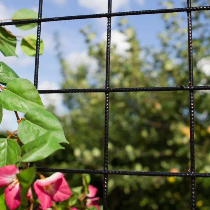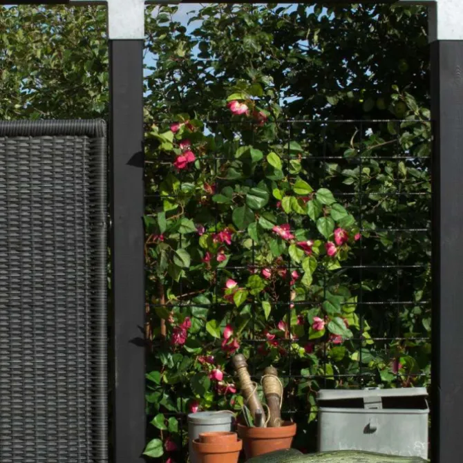 Dit stalen draadmat – ook wel trellisscherm genoemd – zorgt voor een speelse onderbreking van jouw tuinschutting. Het is geschikt voor begroeiing met klimplanten. Het gaasscherm heeft een totale afmeting van 90 x 180 cm en een maaswijdte van 10 x 10 cm.