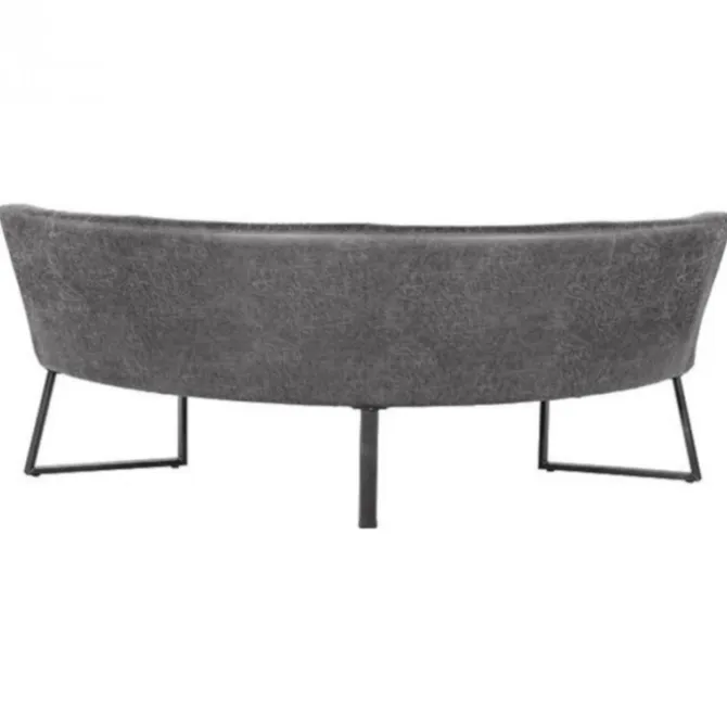 HomingXL ronde eetkamerbank geschikt voor een ronde tafel met een diameter van 150 cm. Deze stoere halfronde eetkamerbank Hengelo is gestoffeerd met de prachtige antraciet-kleurige lederlook stof Missouri 09. De bank is uitgevoerd met zwarte metalen poten. Deze eetkamerbank heeft een stoere uitstraling en is zowel geschikt voor een industrieel als een modern interieur.