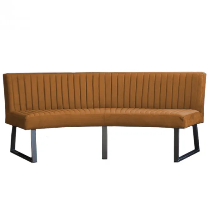 HomingXL ovale eetkamerbank geschikt voor een ovale tafel met een lengte van 240 cm. Deze stoere ovale eetkamerbank Hengelo is gestoffeerd met de prachtige Element velours stof in de kleur bruin. De bank is uitgevoerd met zwarte metalen poten. Deze eetkamerbank heeft een stoere uitstraling en is zowel geschikt voor een industrieel als een modern interieur.