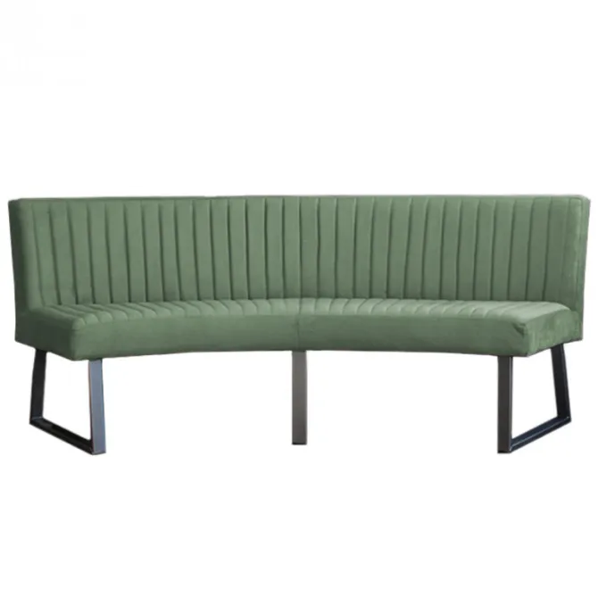 HomingXL ovale eetkamerbank geschikt voor een ovale tafel met een lengte van 240 cm. Deze stoere ovale eetkamerbank Hengelo is gestoffeerd met de prachtige Element velours stof in de kleur lichtgroen. De bank is uitgevoerd met zwarte metalen poten. Deze eetkamerbank heeft een stoere uitstraling en is zowel geschikt voor een industrieel als een modern interieur.