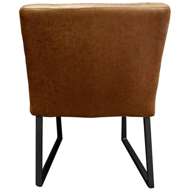 Deze stoere halfronde eetkamerstoel Hengelo is gestoffeerd met de prachtige coganc-kleurige lederlook stof Missouri 03. De stoel heeft zwarte metalen poten. Deze eetkamerstoel heeft een stoere uitstraling en is zowel geschikt voor een industrieel als een modern interieur.