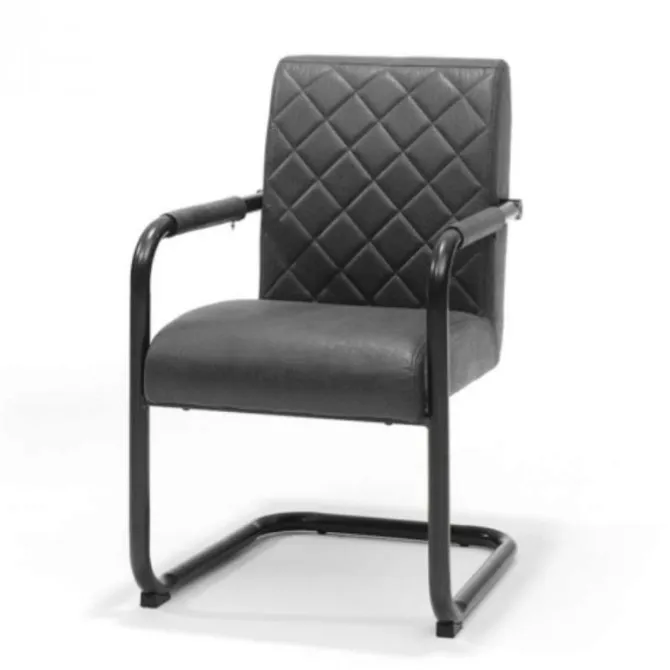 De eetkamerstoel Monaco is een stoere, industriële eetkamerstoel bekleedt met een lederlook stof Maya in de kleur antraciet. Het ‘zwevende’ model geeft de stoel niet alleen een mooie look, maar zorgt er ook nog eens voor dat de stoel heerlijk comfortabel zit! Zo kun je urenlang heerlijk tafelen…! De Monaco stoel is uitgevoerd met zwart gepoedercoat metalen poten. De rugleuning is voorzien van decoratieve stiksel.