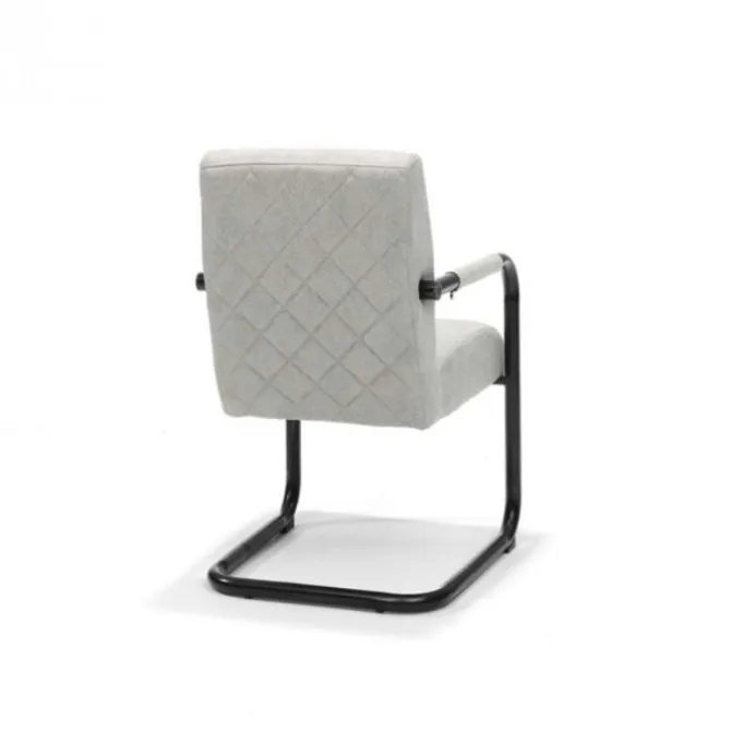 De eetkamerstoel Monaco is een stoere, industriële eetkamerstoel bekleedt met een lederlook stof Maya in de kleur lichtgrijs. Het ‘zwevende’ model geeft de stoel niet alleen een mooie look, maar zorgt er ook nog eens voor dat de stoel heerlijk comfortabel zit! Zo kun je urenlang heerlijk tafelen…! De Monaco stoel is uitgevoerd met zwart gepoedercoat metalen poten. De rugleuning is voorzien van decoratieve stiksel.