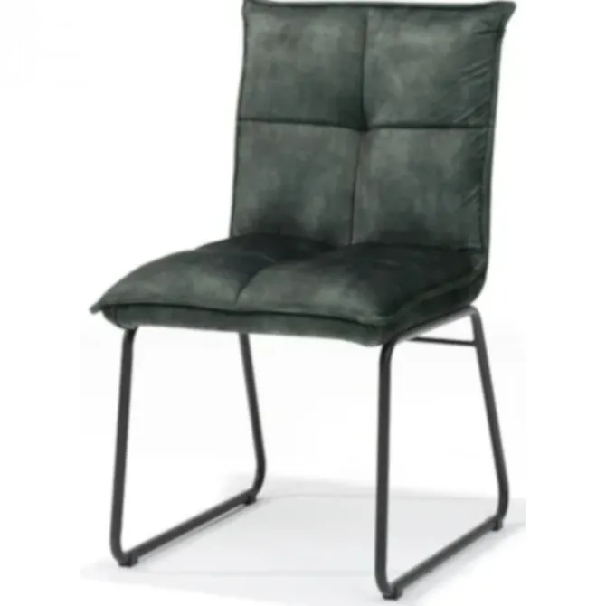 Deze stoel is verkrijgbaar in de kleuren antraciet, groen en goud en wordt geleverd met zwart gepoedercoat metalen poten. De verschillende kleuren zijn ook uitstekend met elkaar te combineren. De stoelen beschikken over een hoogwaardige afwerking met decoratieve stiksels.