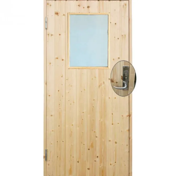 Enkele deur met raam incl. kozijn en beslag – Linksdraaiend – Onbehandeld – 88,6 x 197,8 cm