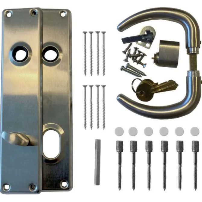 Deurbeslag voor tuindeur – RVS – complete set met 3 sleutels