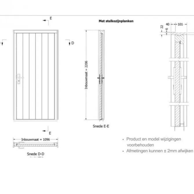Trendhout enkele plaatdeur inclusief kozijn. Afmeting deur – 930 x 2115 mm. Afmeting kozijn – 1064 x 2189 mm. Door de aluminium inlage heeft deze plaatdeur een hoge stabiliteit en maatvastheid. De plaatdeur wordt geleverd exclusief dorpel. Deze is te vinden bij de bijbehorende producten.