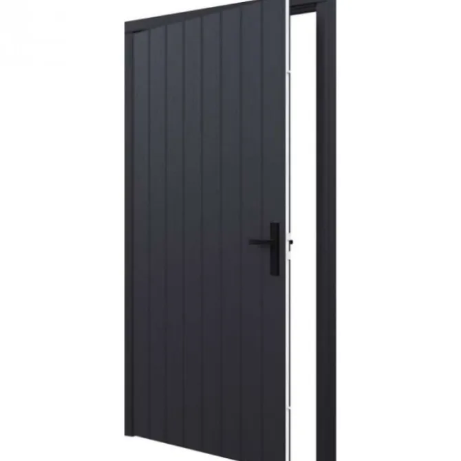 Trendhout enkele plaatdeur XL inclusief kozijn. Afmeting deur – 1200 x 2115 mm. Afmeting kozijn – 1334 x 2189 mm. Door de aluminium inlage heeft deze plaatdeur een hoge stabiliteit en maatvastheid. De plaatdeur wordt geleverd exclusief dorpel. Deze is te vinden bij de bijbehorende producten.