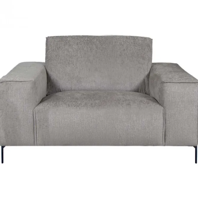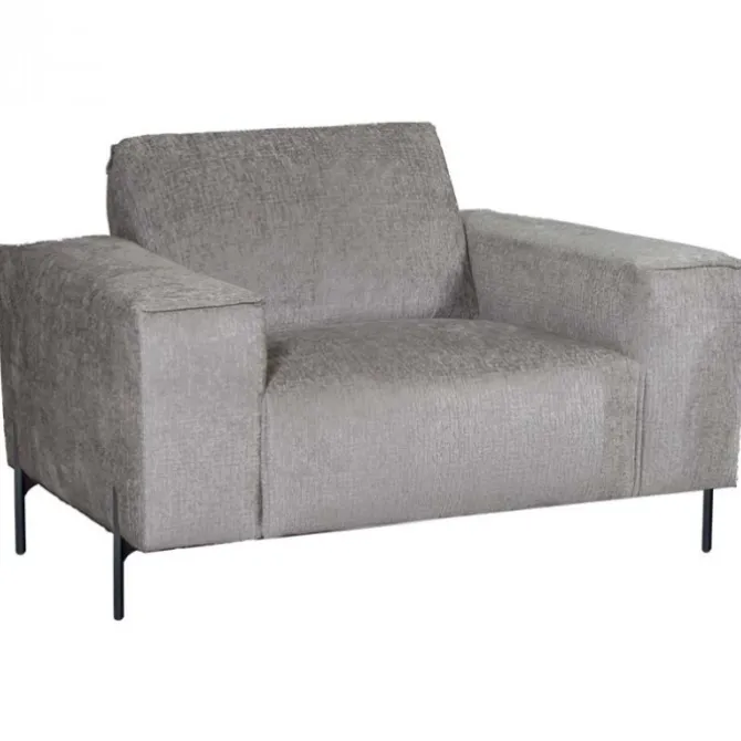 Deze moderne fauteuil met een zeer knuffelbare stof is de Höft. Deze fauteuil is uitgevoerd in de stof Fusion Steel (grijs). De stof heeft een gemêleerde kleur. Doordat de basis iets donkerder is, geeft dit een mooi diep effect. De fauteuil heeft vast kussen, maar door de manier hoe dit kussen gestikt zijn, is het net alsof de fauteuil los kussen heeft. De Höft heeft dunne, maar zeer stevige half ronde poten. Dit zorgt ervoor dat je fauteuil in je woonkamer ruimtelijk oogt.