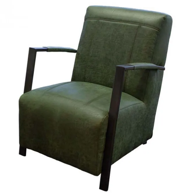 De fauteuil Rosetta is een elegante, maar ook een industriële fauteuil met een stevig zitcomfort. De poten zijn uitgevoerd met een antracietgrijze coating en zijn voorzien van stoere lasverbindingen aan de voorzijde van de armleuning. De fauteuil past bij iedere woonstijl, van klassiek tot modern en van landelijk tot trendy. Een heerlijke stoel om lekker in weg te kruipen voor de kachel of de televisie. De fauteuil is bekleed met de groen-kleurige lederlook stof Missouri 10.