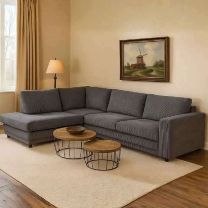 Hoekbank Girona open eind links – Zoom 21 – 2,04 x 2,61 mtr breed. Op zoek naar een comfortabele én stijlvolle hoekbank in ribstof? De hoekbank Girona is dan precies wat je zoekt. Deze moderne bank is direct uit voorraad leverbaar en bekleed met een zachte, smalle ribstof die niet alleen een luxe uitstraling geeft, maar ook heerlijk aanvoelt. Dankzij de fijne structuur nodigt Girona uit om lekker onderuit te zakken en optimaal te ontspannen – perfect voor lange avonden relaxen of gezellige momenten samen in de woonkamer. Read more
