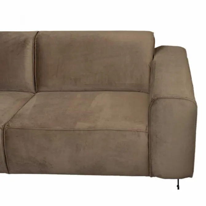 Deze stoere loungebank heeft met zijn diepe zit met bonellvering en lage rugleuning een moderne uitstraling. De Lambada heeft vaste kussens met opstaande naden en is uitgevoerd in velours Juke taupe 12. De unieke brede poten zijn van zwart metaal. Houd je van een stevige zitting en een stoere industriële uitstraling, dan is dit jouw bank!