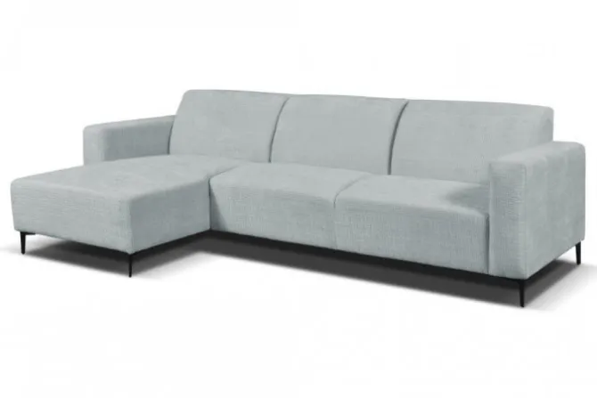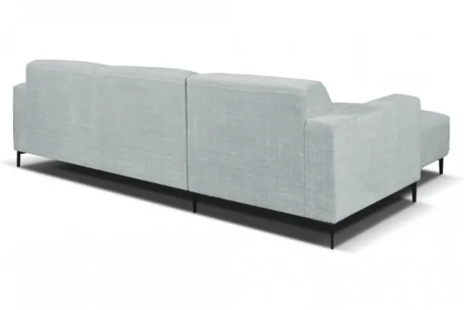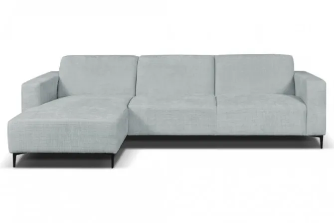 De hoekbank Ronald staat op robuuste metalen poten die zorgen voor een industriële uitstraling. De strakke armleuningen aan beide zijden maken het design compleet en bieden een comfortabele ondersteuning.
