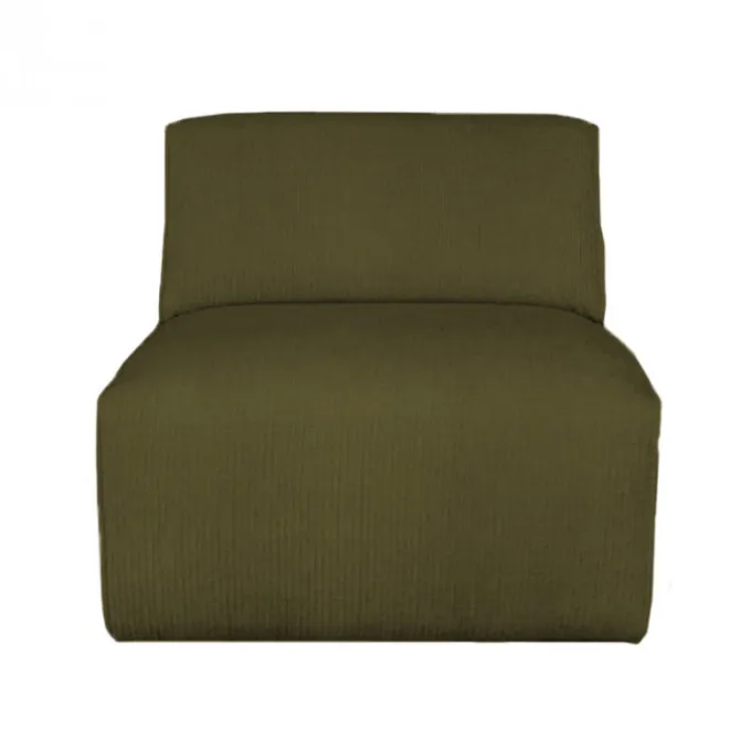 De hoekbank bestaat uit losse modules: een open eind, hoekstuk, een tussenstuk en hoekstuk met armleuning. Het hoekstuk verbindt de zijden, terwijl het open eind zonder armleuning een ruimtelijke en moderne uitstraling bieden. De modules zijn bekleed met de stof Rackham in de kleur groen.