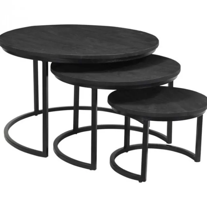 Deze ronde zwarte industriële bijzettafels van massief Mango zijn van het merk I-Catchers. Dit is een set van 3 tafels in verschillende maten. De bladdikte is circa 20 mm. Door het metalen frame staat deze stevig op de grond. Het leuke van deze set is dat je de tafeltjes bij elkaar kan zetten of speels naast elkaar. Deze bijzettafel heeft een lak lag waardoor deze weinig onderhoud heeft. Is de tafel toch vies geworden? Neem deze dan met een vochtige doek af.