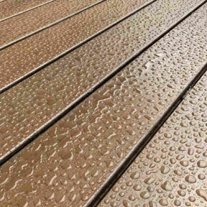 Het is van belang dat de vlonderplank stof- en vetvrij is voor het aanbrengen van de onderhoudsolie (droogtijd 8-12 uur). Wij raden aan de olie 24 uur in te laten trekken, alvorens het terras weer te gebruiken.