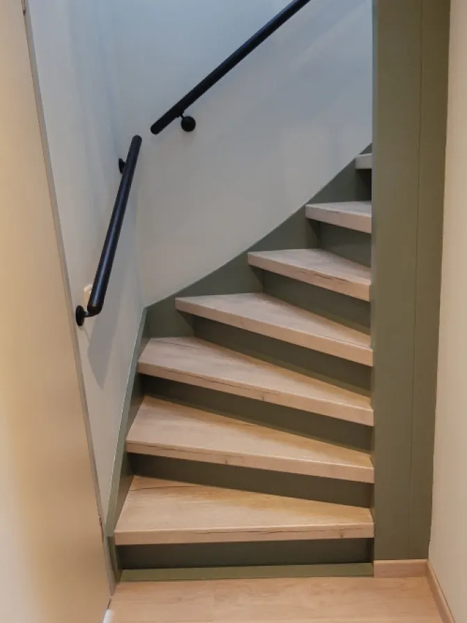 Voor de rechte treden van de trap zijn er overzettreden beschikbaar van 100 x 30 cm. Voor de grotere traptreden in huis waar een draai in zit, zijn er overzettreden van 130 x 38 cm beschikbaar.
