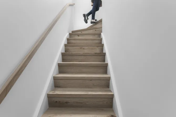 Box D afdekkappen te gebruiken bij een open trap om de zijkant van de treden af te werken.