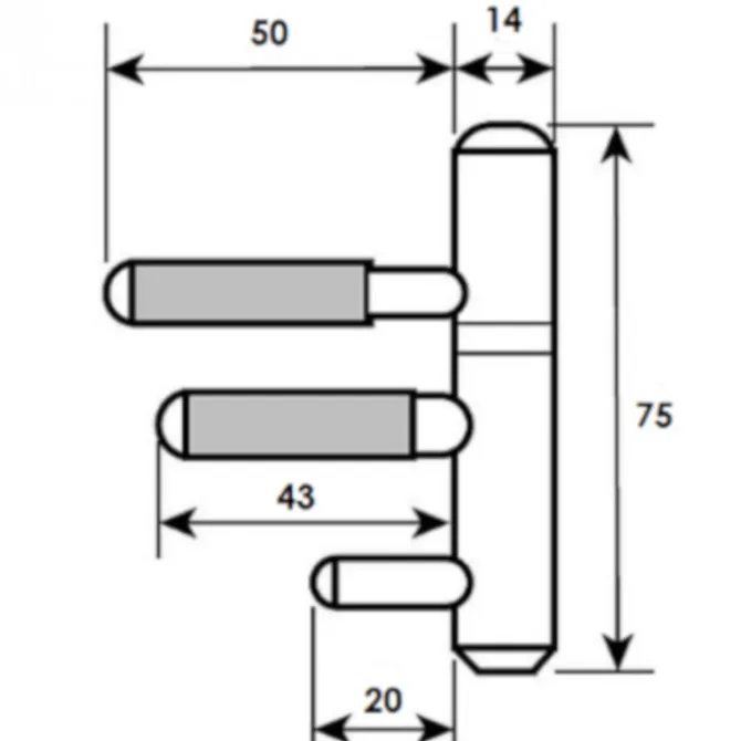 Standaard paumellescharnier voor het monteren van opdekdeuren in houten kozijnen. Afmeting: 75 x 14 mm. Geschikt voor zowel links- als rechtsdraaiende deuren.