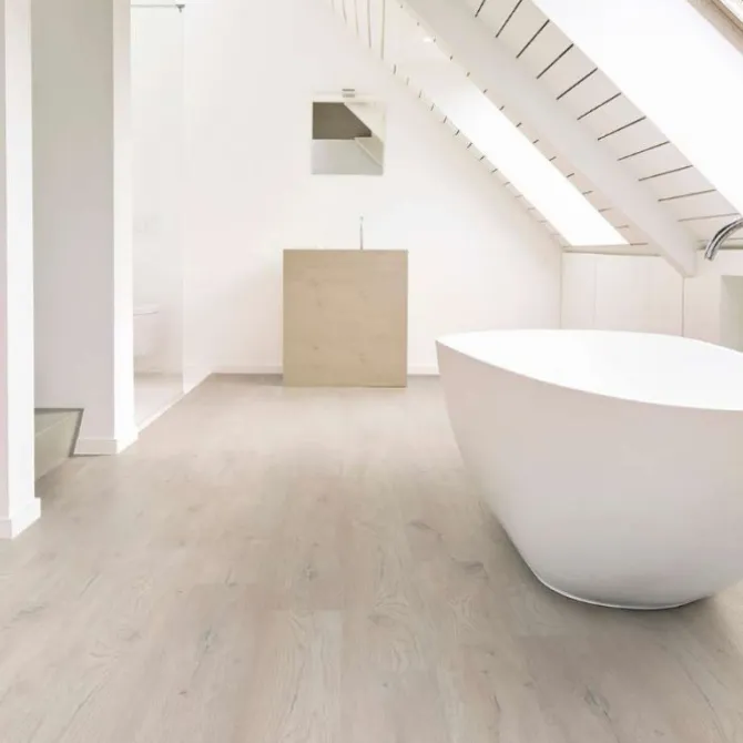 Eerst een duurzame geïntegreerde kurkonderlaag met daarop een akoestische geluiddempende laag. Vervolgens de comfort- en stijlvolle laag die niet te onderscheiden zijn van echt hout en tot slot een hoogwaardige slijtlaag van 0.55 mm dik.