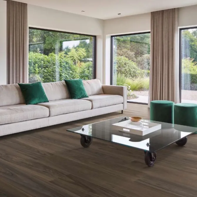 Eerst een duurzame geïntegreerde kurkonderlaag met daarop een akoestische geluiddempende laag. Vervolgens de comfort- en stijlvolle laag die niet te onderscheiden zijn van echt hout en tot slot een hoogwaardige slijtlaag van 0.55 mm dik.