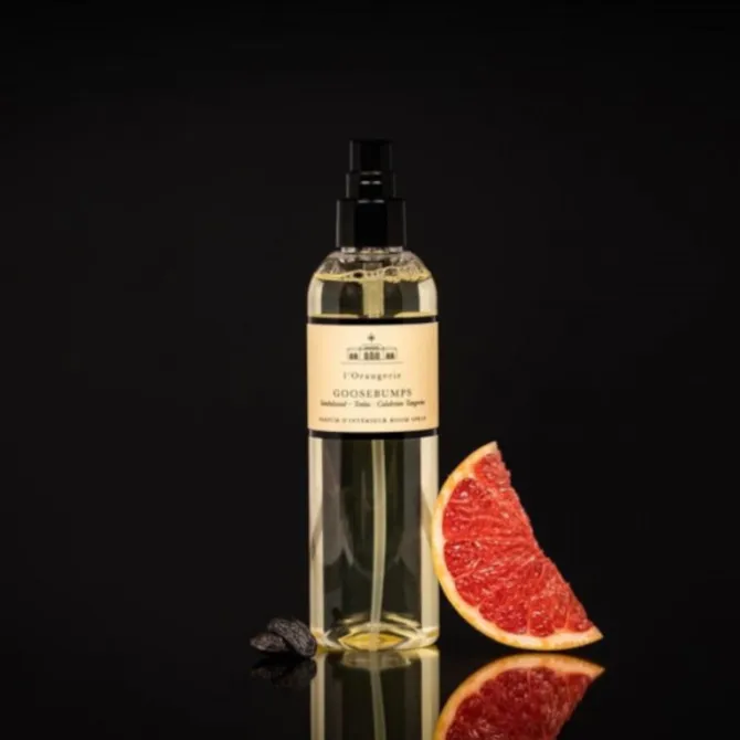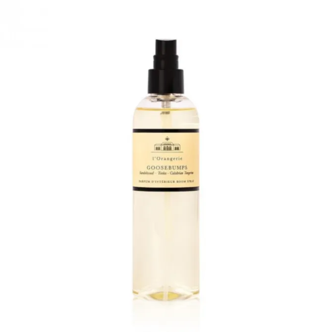 L’Orangerie Roomspray Goosebumps 250 ml. Een parfumtoverbal vol verrassingen. Zonnig fruit speelt met bloemen. Vanille wordt verwend door kermissferen’. Hout warmt zich aan tonkaboon.
