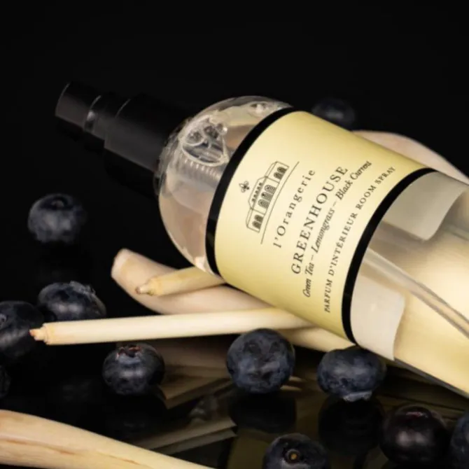 L’Orangerie Roomspray Greenhouse 250 ml. Alsof een groen tapijt in je kamer wordt uitgerold. Citrusnoten en zwarte bes vermengd met tijm en thee, gelardeerd
