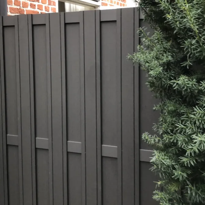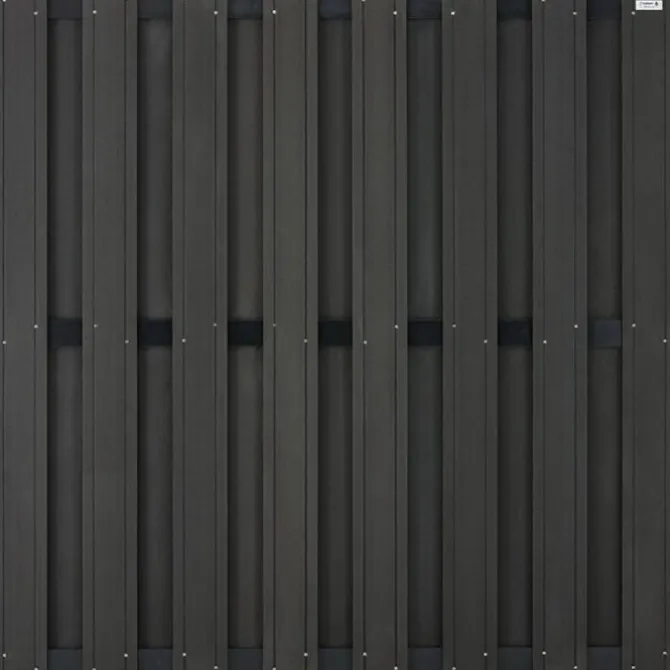 Schutting composiet Design bruin met blank aluminium frame (180 x 180 cm)