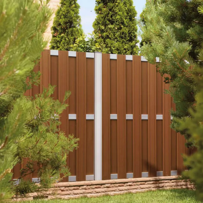 Schutting composiet Design bruin met blank aluminium frame (180 x 180 cm)