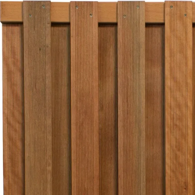 Schutting hardhout keruing Lijn recht 23L geolied (180 x 180 cm) fijne ribbel schermdikte 3,9 cm.