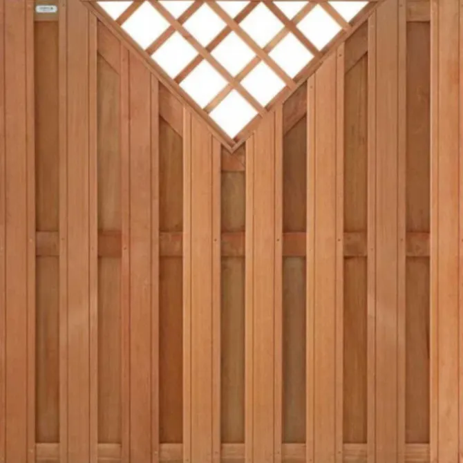 Elephant Schutting hardhout Keruing Timber recht met v- trellis 15L (180 x 180 cm) v-groef schermdikte 3,9 cm. Scherm bestaat uit 15 planken (8 planken voor, 7 planken achter). Voorzien van RVS schroeven om roesten te voorkomen.