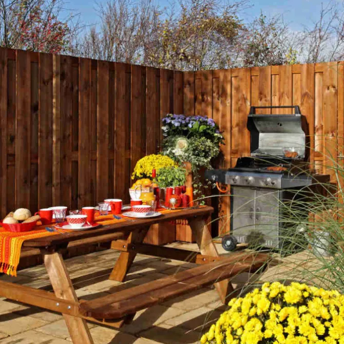 Scherm bestaat uit 15 planken (8 planken voor, 7 planken achter). Voorzien van RVS schroeven om roesten te voorkomen. Daarnaast bevat de schutting het FSC keurmerk, wat aangeeft dat het hout voor deze schutting op een duurzame en verantwoorde manier is gekapt.