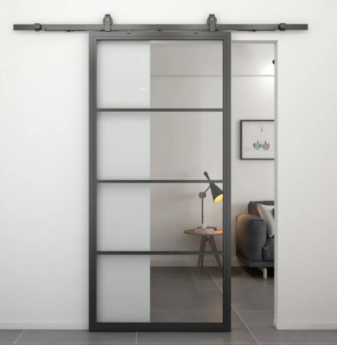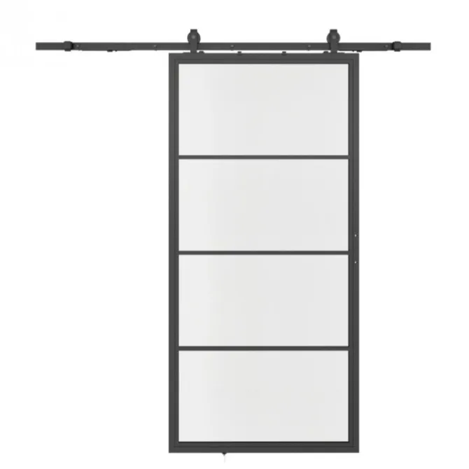 Stalen schuifdeur – Loft – 4 vaks helder glas – 215 x 100 cm