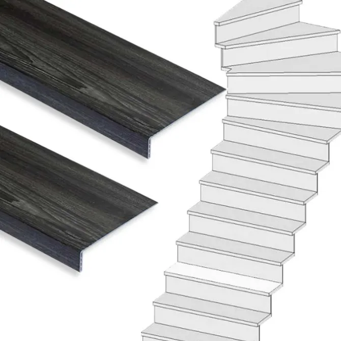 Dit is een complete Stepwoord traprenovatieset met SPC toplaag traptreden in de kleur antraciet, inclusief montagekit en afwerkingskit. Deze complete set is geschikt voor een trap met 1 kwart draai met 12 treden. De set wordt geleverd zonder stootborden.